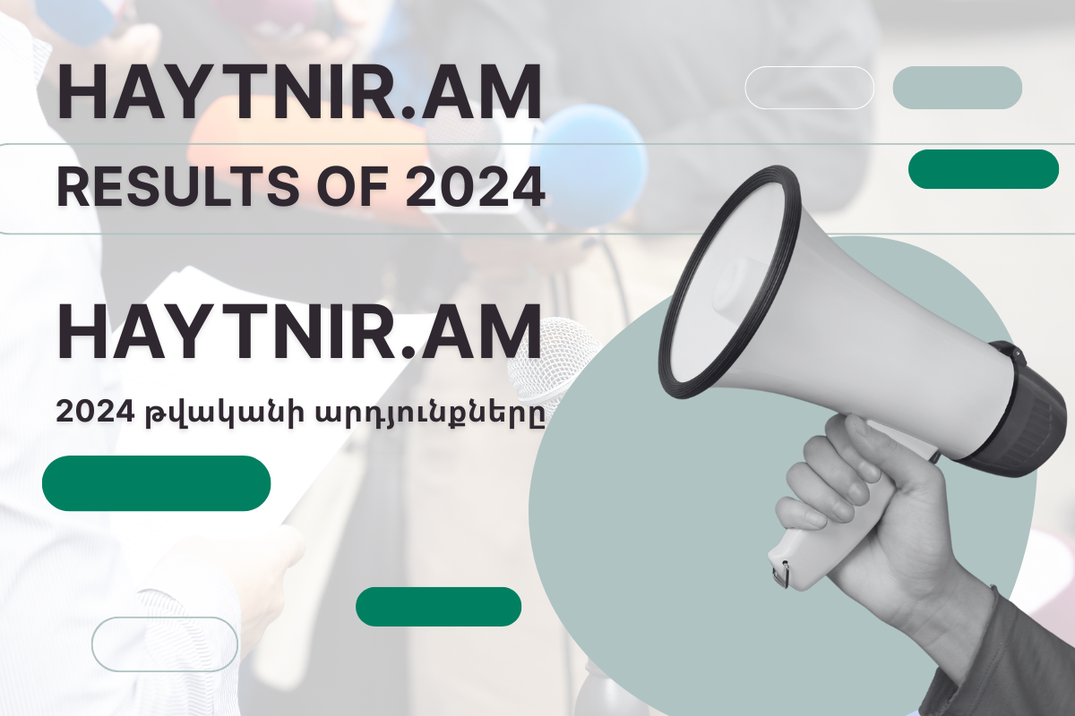 Սա haytnir.am հարթակի միջոցով ստացված հայտերի (ազդարարումների) քանակի վերաբերյալ վիճակագրությունն է, որը ներկայացվում է ըստ արդյունքների և այլ չափանիշների։